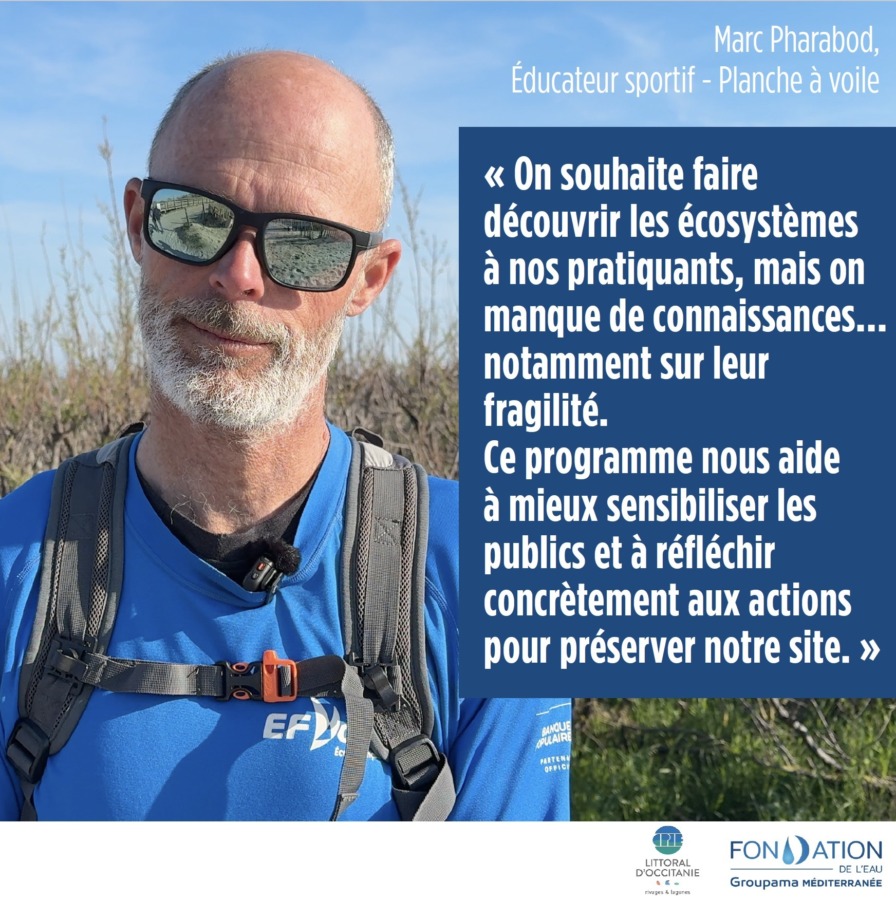 Ce projet est déployé par le Centre Permanent d’Initiatives pour l’Environnement du Littoral d’Occitanie (CPIE Lidoc). Il consiste à se rapprocher des professionnels des sports et loisirs nautiques pour renforcer leur connaissance des enjeux écologiques du littoral occitan et les outiller concrètement pour les rendre ambassadeurs d’une pratique plus responsable et respectueuse des écosystèmes, et ainsi faire ruisseler les messages vers leurs pratiquants et usagers, mais aussi les saisonniers et touristes.